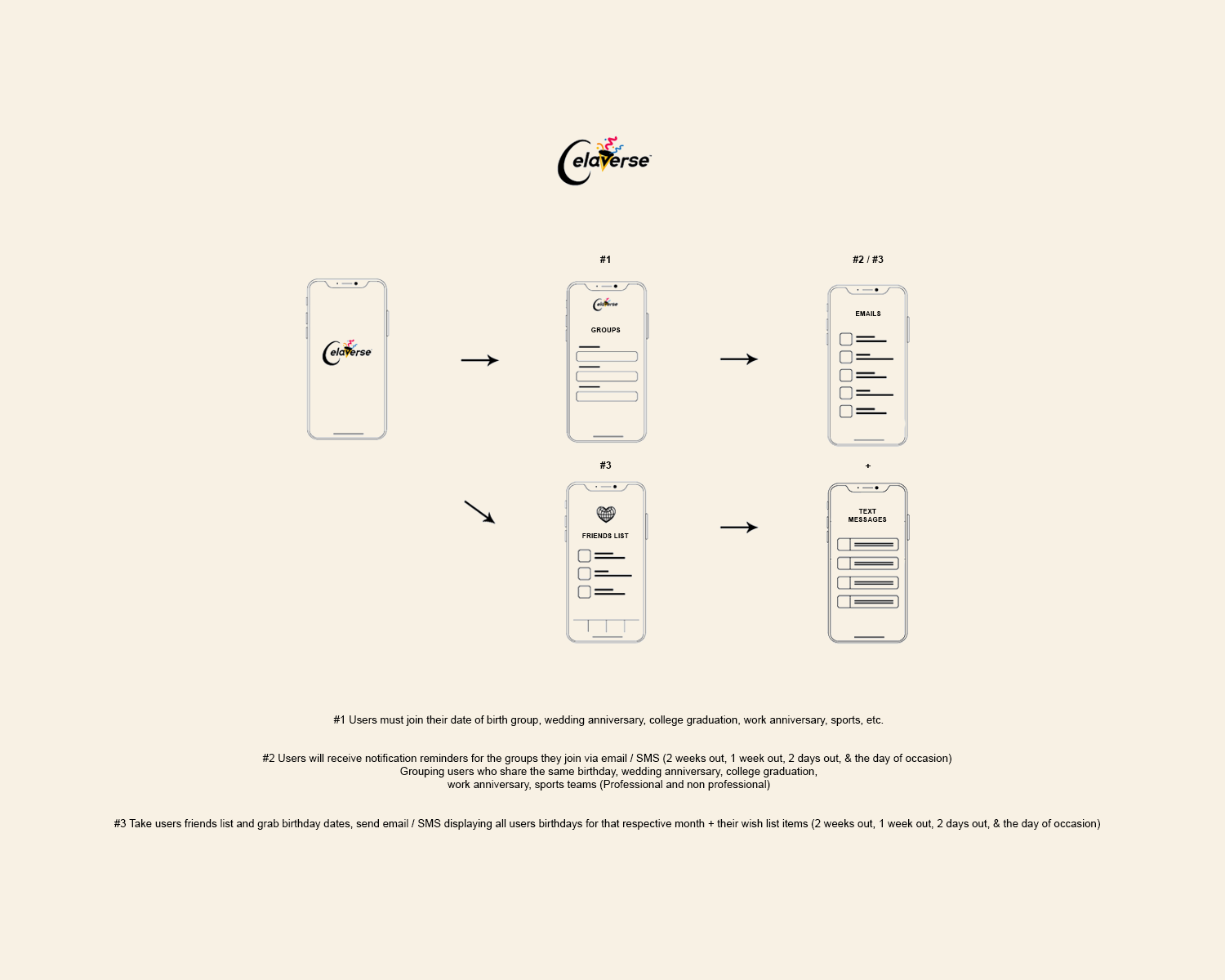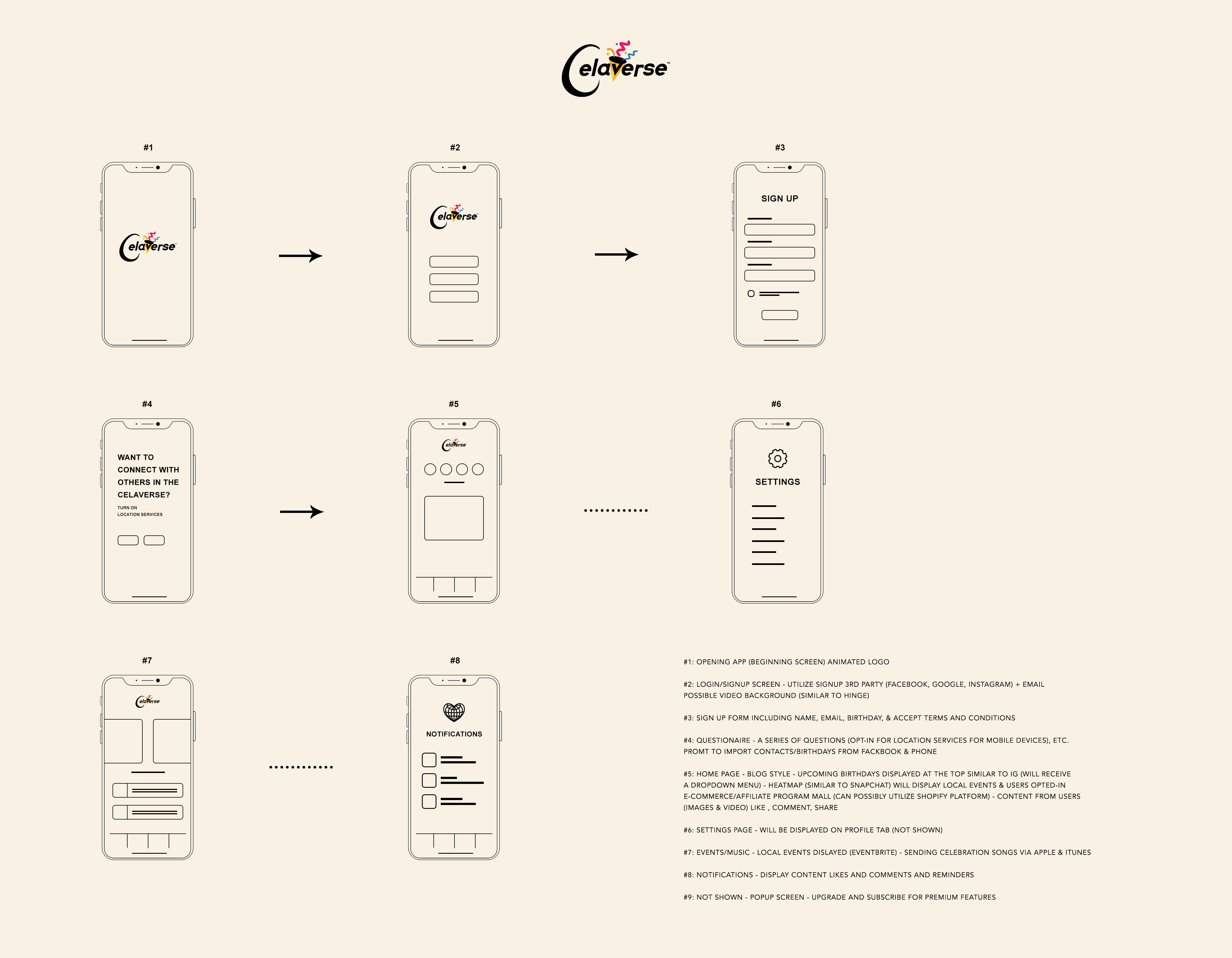 Celaverse™ is a social platform with the capability to connect users around the globe who share the same birthday. The company's aim is to spread love, peace, joy and happiness through the act of celebration. My task was to design a web-based mobile app and branding assets for the platform. I will also assist in integrating automation workflows for user interaction.
